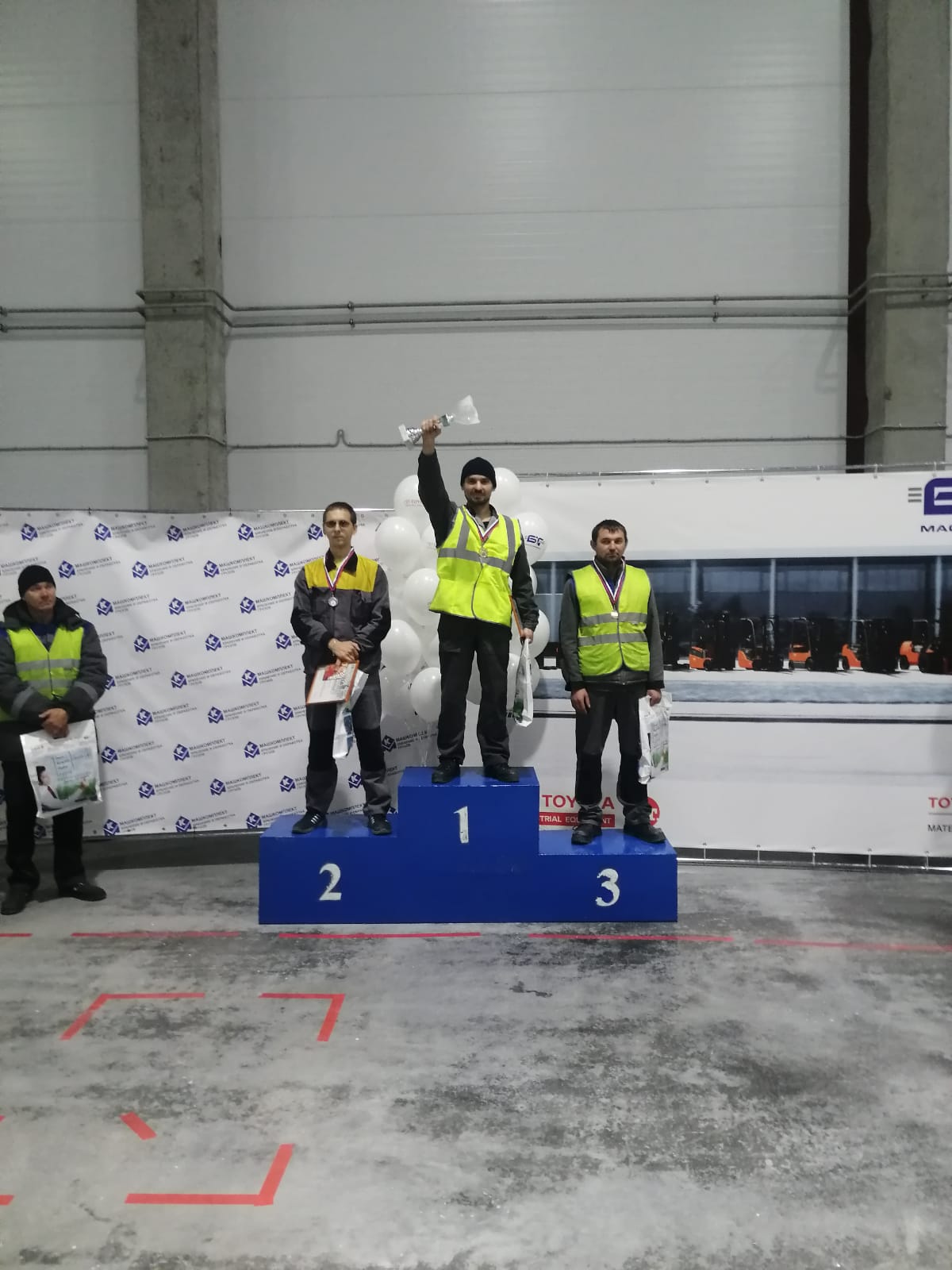 Лучший водитель погрузчика предприятия. Всего было 4 команды по 2 человека от 4 организаций.